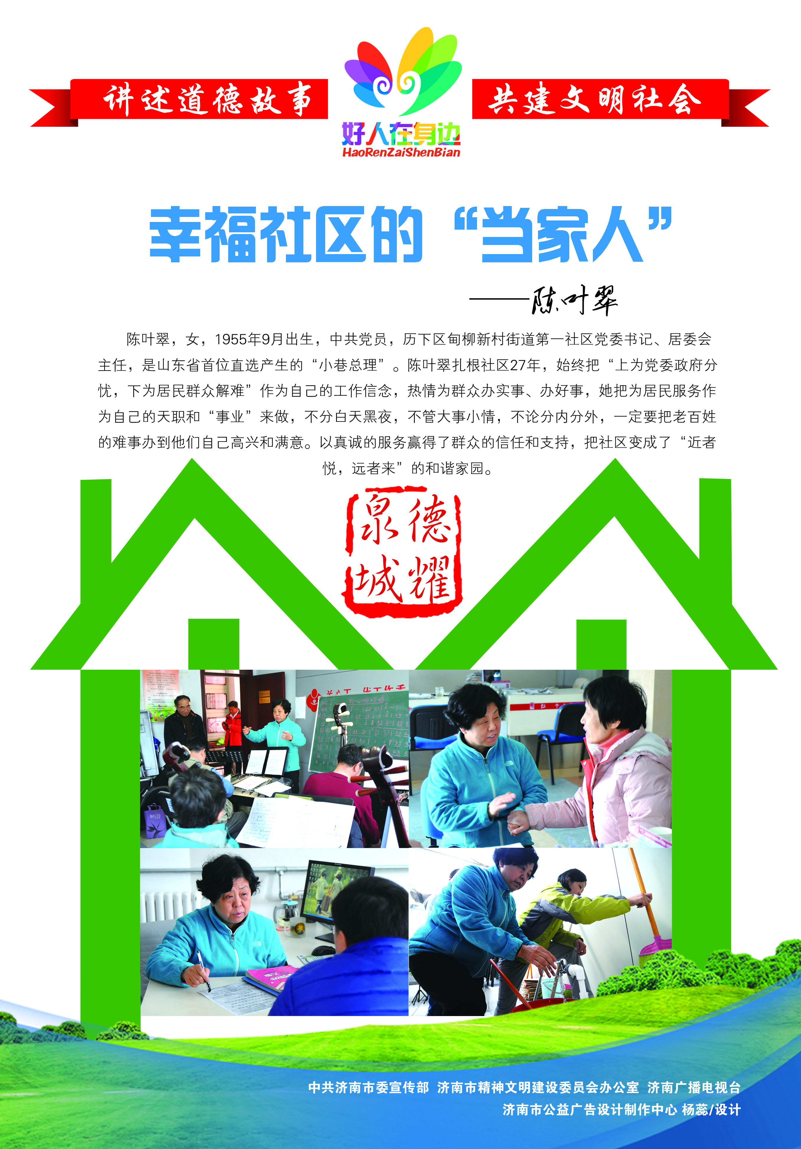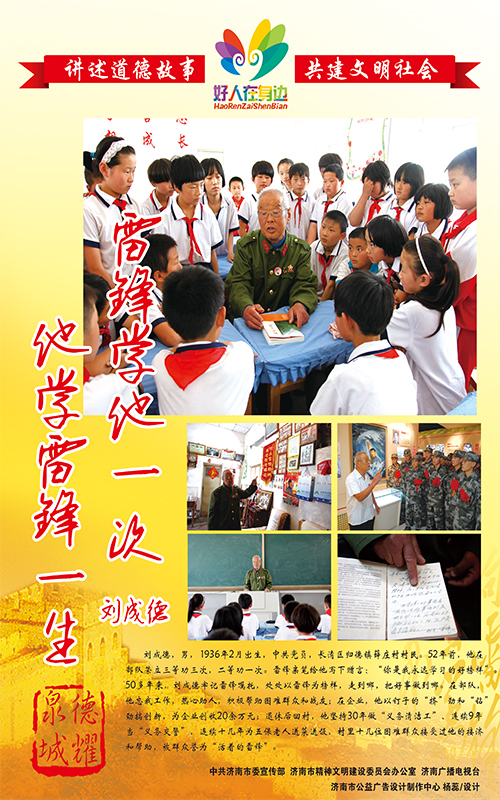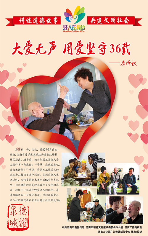 | 于瑞芝,女,1921年10月出生,中共党员,济南市历下区燕山街道燕南社区居民,支前老模范。1990年离休后,她人退心不退,与老伴尹逊远通过各种途径捐款捐物近百万元,她见缝插针为部队子弟兵缝制数千双鞋垫,利用祖传绝活免费为2万多名腰椎间盘突出症患者治疗,被人们称为“活雷锋”。于瑞芝常说:“我做的都是普普通通的事,只是把奉献爱心……[更多] |
